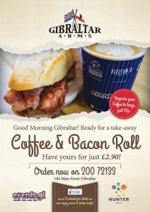 - 7:00 amCoffee & Roll Deal @ Gibraltar Arms