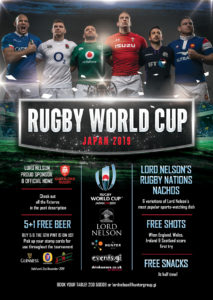 Week 2 of Fixtures – 2019 Rugby World Cup – at the Lord Nelson!